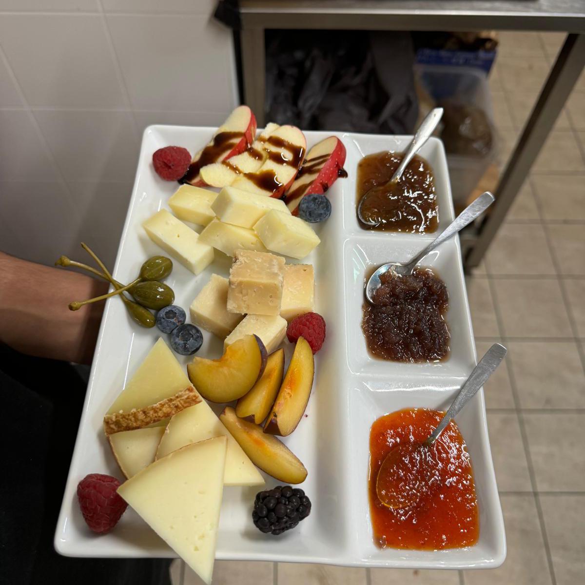 Tagliere di formaggi con confetture e frutta